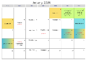 Here is our January 2026 Calendar for your reference. Remember: Any date that has nothing in it is 'business as usual'. This calendar shows...